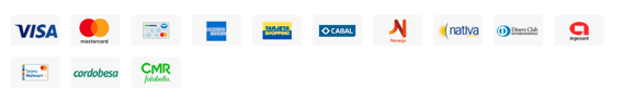 Podés pagar a través mediante las siguientes tarjetas a través de MercadoPago.
