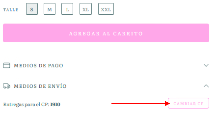 y por último en el botón de CAMBIAR CP debrás ingresar tu código postal y debajo vas a poder ver todas las opciones disponibles para esa localidad: